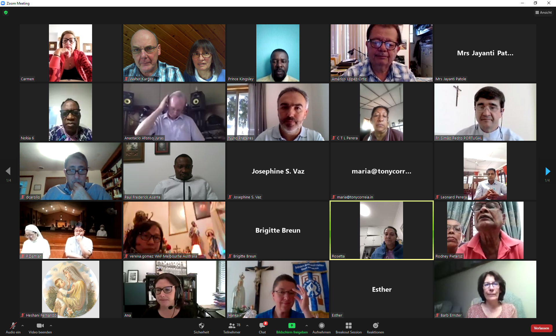 Nuno Prazeres begrüßte um 14.30 Uhr unserer Zeit aus Fatima alle Mitglieder des Fatima-Weltapostolates, die sich von überall in der Welt per Zoom zugeschaltet hatten, um als Fatima-Familie vereint mit der Muttergottes für die Anliegen des Apostolates und für den Frieden in der Welt zu beten.