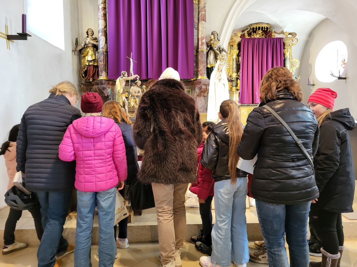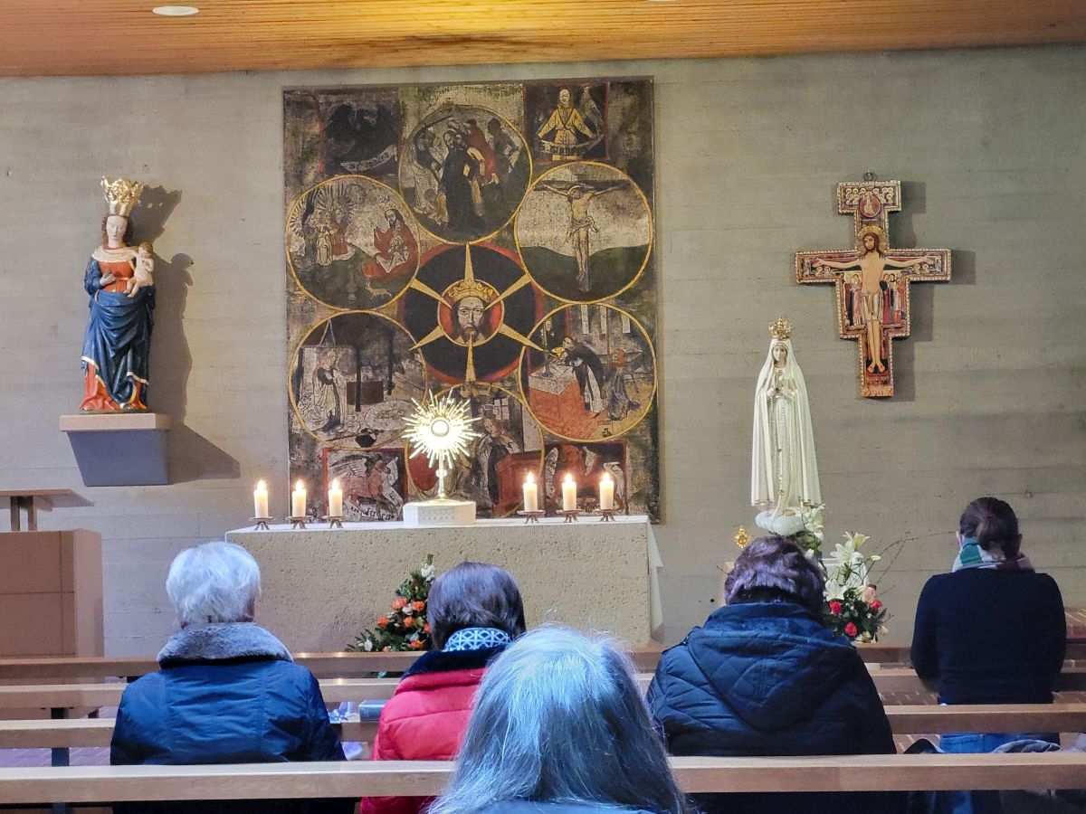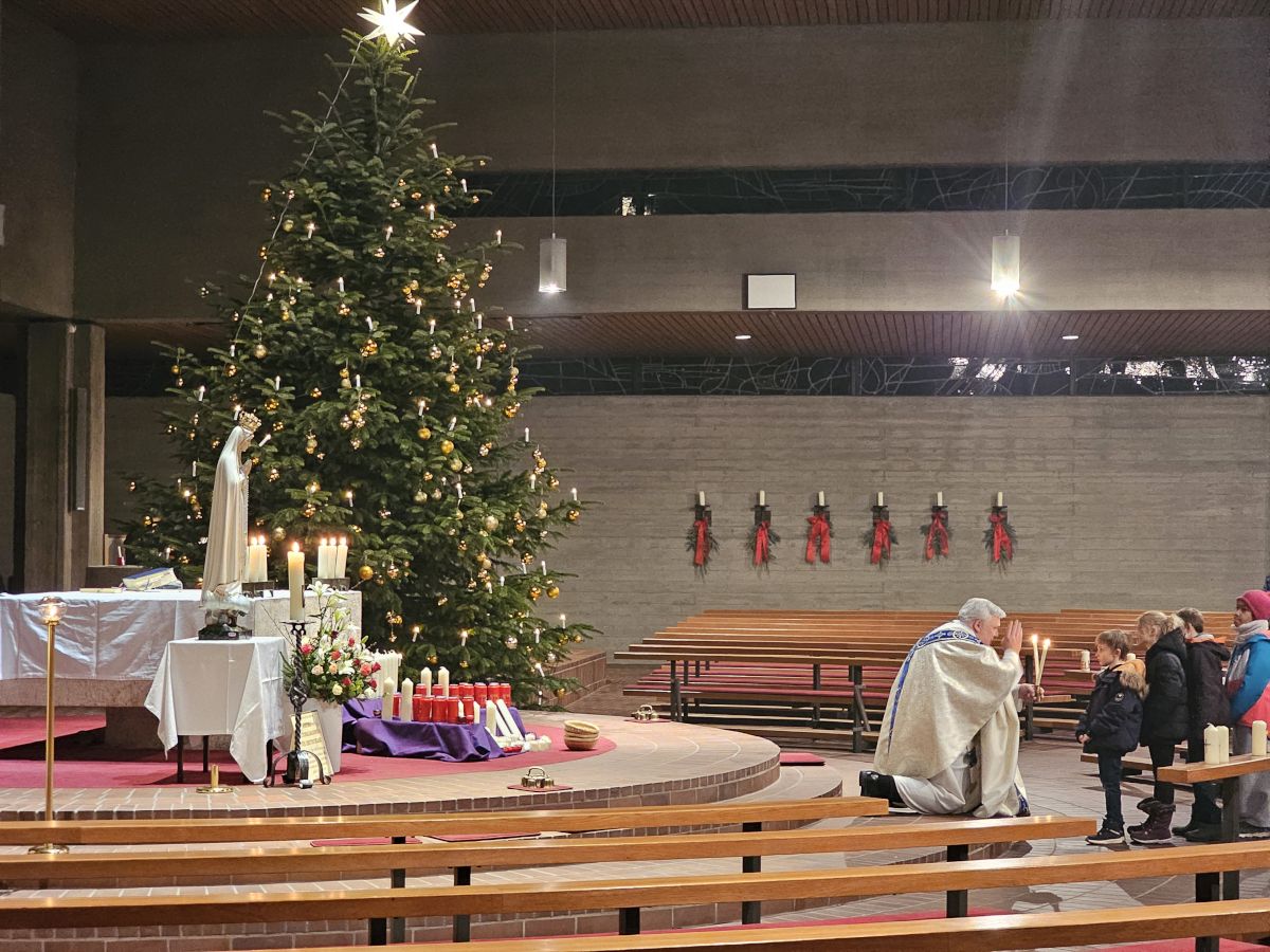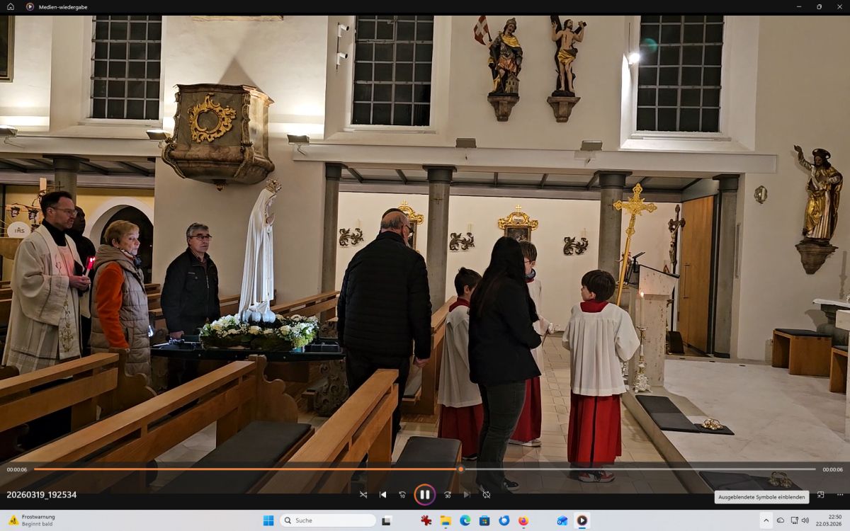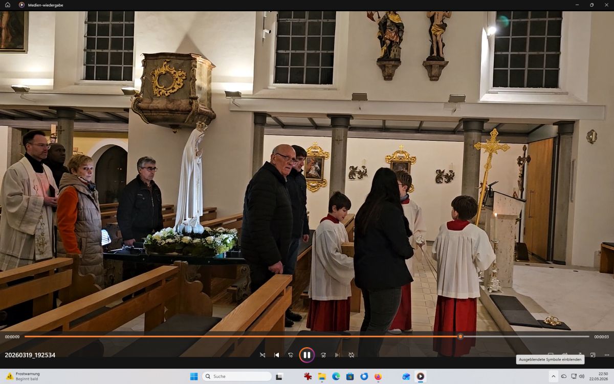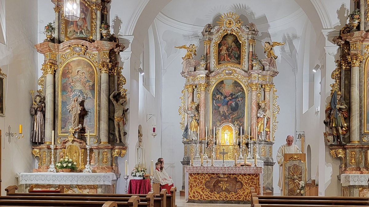 Mais. Symbolisch betrachtet durchbrach der helle Schein, der von der Fatima-Nationalmadonna ausgeht, bei der Lichterprozession in Mais die Dunkelheit und brachte die Strahlkraft dieser Gnadenstatue zum Ausdruck. Am zweiten Tag des Besuchs der Fatima-Madonna feierten 100 Marienverehrer im Beisein von Ruhestandspfarrer Ambros Trummer, Pfarrer Augustinus und der Patres aus dem Neukirchner Franziskanerkloster zusammen mit Diakon Walter Karger eine beeindruckende Fatima-Andacht in der Kirche St. Josef. Der Vorsitzende des Fatima-Weltapostolats U.L.F. in Deutschland e.V. erklärt die Bedeutung und den Ursprung der Fatima-Nationalmadonna, die für Deutschland geweiht und in Auftrag gegeben wurde, nicht fest in einer Kirche zu verbleiben, sondern durch die Lande zu ziehen. Zum Abschluss ihrer zweitägigen Stationsreise in Mais betete die große Schar der Gläubigen in Gegenwart der Fatima-Madonna in der St.-Josef-Kirche um den Frieden in der Welt. Diakon Karger, der dafür verantwortlich zeichnet, dass die Botschaft von Fatima unter die Leute kommt, führte bei der Lichterprozession das Reliquiar mit kleinsten Fragmenten der Seherkinder Jacinta und Francisco mit, und erteilte am Schluss nochmals den Einzelsegen. Im Mittelpunkt der beeindruckenden Gebetszeit stand die Besinnung auf „Unsere Liebe Frau von Fatima“. Resi Prechtl fungierte als Vorbeterin des gemeinsamen Fatima-Rosenkranzgebets mit den jeweiligen Meditationstexten „… Jesus, bei dessen Geburt Engel den Frieden verkündeten“ , „… der unsere Schritte auf den Weg des Friedens lenkt“, „… der seliggepriesen hat, die Frieden stiften“, „… der seine Jünger gesandt hat, den Frieden zu bringen“ und „…der uns seinen Frieden hinterlassen hat“. Zwischen den einzelnen Rosenkranz-Geheimnissen erschallte der Liedruf des „Kleinen Lobpreises“. Einen meditativen Impuls setzten die zehn Strophen des bekanntesten Fatima-Liedes „Ave Maria von Fatima“ (auch „Am dreizehnten Maien“), das die wundersamen Marienerscheinungen vom 13. Mai 1917 besingt. Der Liedtext beschreibt die Erscheinung der Jungfrau Maria vor den drei Hirtenkindern im Tal von Cova da Iria, mahnt zur Umkehr, zum Rosenkranzgebet und zur Verehrung Mariens mit dem melodischen Refrain: Ave, Ave, Ave Maria. Rosa Vogl fügte dem „Gebet an Unsere Liebe Frau von Fatima“ ihre eigenen Gedanken an, in denen sie Zuversicht in schweren Zeiten sowie die Fürbitte an Maria, die Königin des Friedens, äußerte. Unter der Leitung von Thomas Schmatz umrahmten die Neukirchner Sänger die Fatima-Andacht mit herzergreifenden Marienliedern, und verknüpften die Verehrung der Gottesmutter mit dem Lied „Da knie ich Maria vor deinem Bild“. Zusammen sprachen alle Andachtsbesucher das Gebet für den Frieden, während das Sängerquartett mit „Hör o Mutter dies Gebet, das aus treuem Herzen geht“ die Bitte verband: Maria verlass uns nicht! Im wohlklingenden Volksgesang wirkte das deutsche Volkslied „Leise sinkt der Abend nieder“ wie ein Gebet. Zu Herzen ging das von den Neukirchner Sängern im Kanon vorgetragene Lied „Wenn ich ein Glöcklein wär‘, schön wollt ich läuten“. So läuteten auch die Kirchenglocken von St. Josef als Zeichen für den Beginn der Lichterprozession. Nachdem alle Besucher ihre Kerzen gegenseitig entzündet hatten, nahmen sie Aufstellung zum feierlichen Umzug, bei dem sie betend das Maiser Gotteshaus weiträumig umrundeten. In Begleitung der Priester und Ordensleute trugen vier Ministranten die Gnadenstatue durch die Straßen. Die Fatima-Madonna, deren Strahlkraft im übertragenen Sinne die Dunkelheit erhellte, stand im Mittelpunkt der Lichterprozession, die der Verehrung und der Bitte um Frieden diente. Die charismatische Ausstrahlung der Fatima-Nationalmadonna begeisterte und inspirierte die Menschen, die sie bewunderten. Diese Statue zeichnet sich durch eine Kombination aus künstlerischer Ausdruckskraft und symbolischer Tiefe aus, die über eine rein handwerkliche Darstellung hinausgeht. Sie umgibt eine fesselnde Aura im positiven Sinn, weshalb die Menschen ihr folgen – so wie dieser Tage. Nach der Lichterprozession kehrte die Pilgermadonna in den Kirchenraum zurück, den das kirchliche Lied „Großer Gott“ im Volksgesang erfüllte. Ruhestandspfarrer Ambros Trummer dankte im Namen von Pfarrer Augustinus allen Organisatoren und Besuchern. Er fasste seine abschließenden Gedanken in Worte: Wir sind zu Maria gegangen, wir sind bei Maria gewesen und haben Geborgenheit gespürt, wir haben unsere Sorgen und Nöte ins Gebet hineingelegt, wir sind mit Maria hinausgezogen. Unterwegs symbolhaft, dass Maria alle unsere Wege mitgeht. Wir gehen nun von Maria weg – gestärkt und voller Zuversicht mit dem Segen Gottes unter der Fürsprache Mariens und der 14 Nothelfer, wie sie im Altarraum der Maiser Kirche zugegen sind. Am Ende spendete Diakon Walter Karger mit dem Reliquiar den Einzelsegen: „Auf die Fürsprache der Heiligen Seherkinder segne dich der allmächtige Gott…“. Ulrike Karger bot den Andachtsbesuchern an, sich aus der „Schatzkiste mit diversen Fatima-Sprüchen“ ein Exemplar mit nach Hause zu nehmen. Damit sollen die Gläubigen an diese besondere Begegnung mit der Fatima-Nationalmadonna für Deutschland immer wieder erinnert werden.