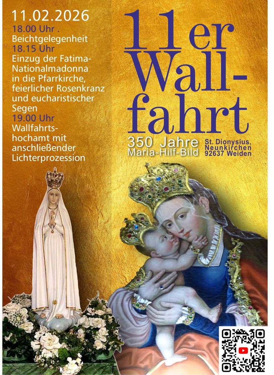 Am Mittwoch, 11. Februar 2026, begann in der Pfarrkirche St. Dionysius Neunkirchen das sechste Jahr der 11er-Wallfahrt zu Unserer Lieben Frau von Lourdes. Die Wallfahrt wurde 2021 im Jubiläumsjahr „350 Jahre Maria-Hilf-Bild" ins Leben gerufen.