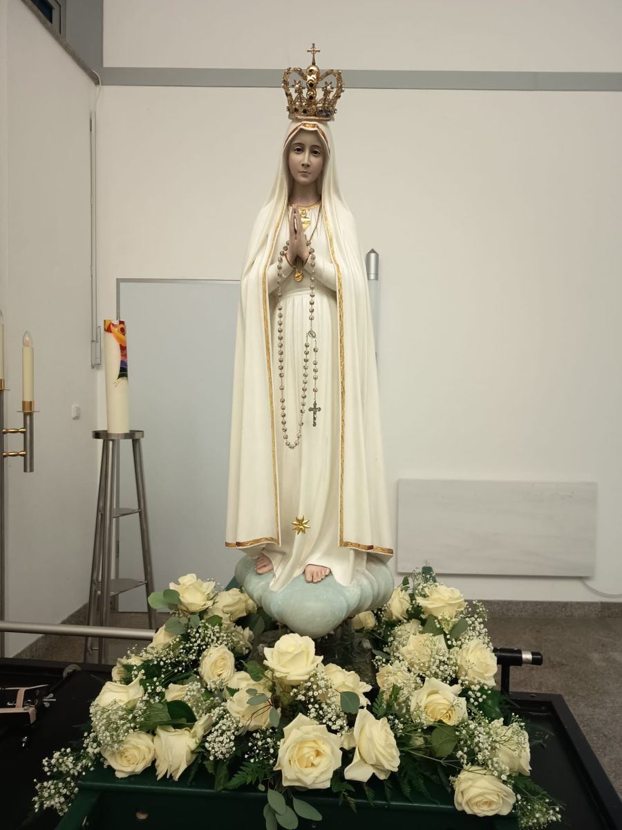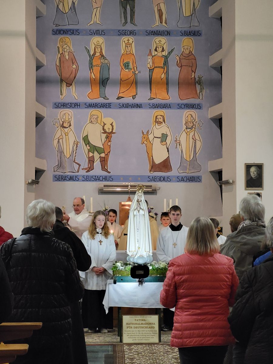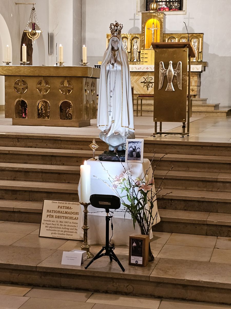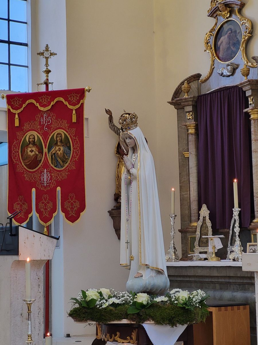Für diesen Wallfahrtsabend besuchte uns die Fatima-Nationalmadonna für Deutschland, die am 13. Mai 1967 in Fatima vom hl. Papst Paul VI. für die deutsche Nation geweiht wurde. Mit päpstlichem Auftrag und Segen verbunden ist sie gleichsam eine große Gnaden-Statue.