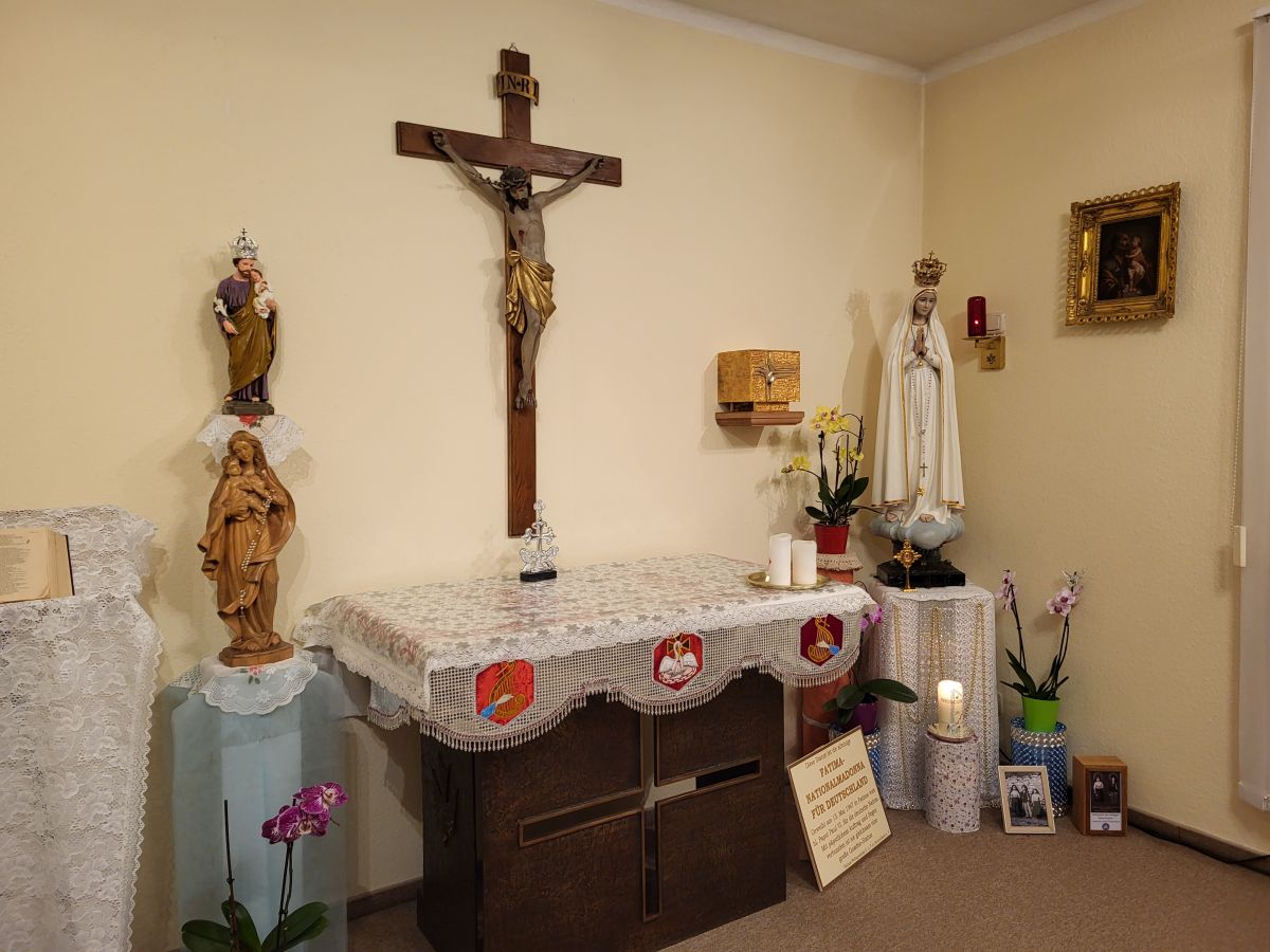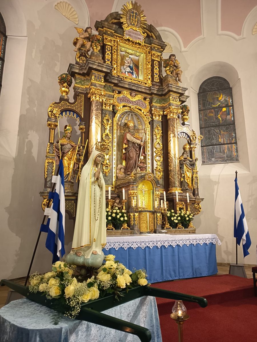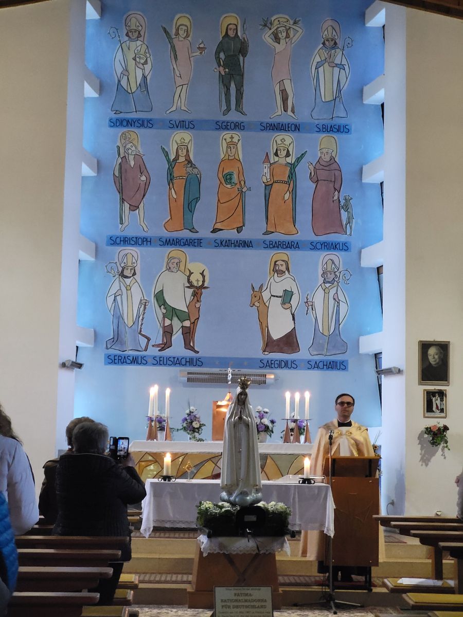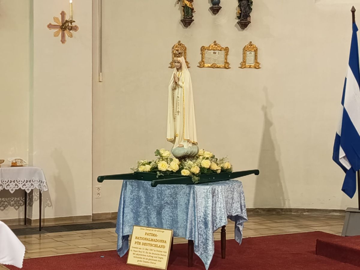 Für diesen Wallfahrtsabend besuchte uns die Fatima-Nationalmadonna für Deutschland, die am 13. Mai 1967 in Fatima vom hl. Papst Paul VI. für die deutsche Nation geweiht wurde. Mit päpstlichem Auftrag und Segen verbunden ist sie gleichsam eine große Gnaden-Statue.