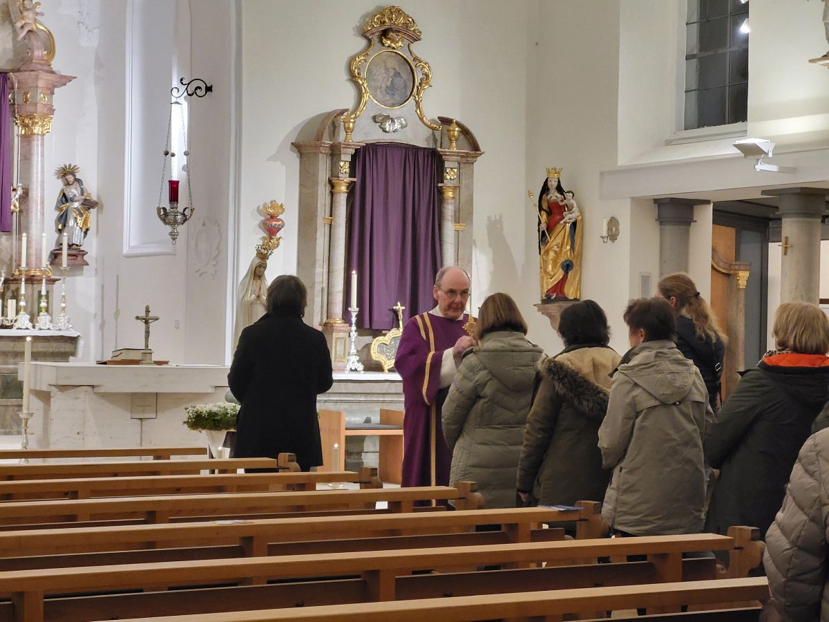 In seiner Predigt griff Pfarrer Thomas Kohlhepp die Worte von Papst Leo XIV. zum heutigen Weltgebetstag der Kranken auf. Er beschrieb unsere Zeit als geprägt von Schnelligkeit, ständiger Verfügbarkeit und wachsender Gleichgültigkeit. Diese Haltung erschwere es, innezuhalten und die Not andererwahrzunehmen. Der Verlust von Aufmerksamkeit für das Gute und Schöne führe zunehmend zu einem Verlust an Sinn und Mitmenschlichkeit. Christliche Antwort darauf sei die bewusste Entscheidungzur Liebe, die ihren Ursprung in Gott habe. Mit Blick auf Lourdes und Fatima wurde deutlich: Maria weist in ihren Botschaften stets auf diese göttliche Quelle hin. In Lourdes erinnere das Wasser an Heilung und Taufe, in Fatima rufe Maria zu Gebet, Umkehr und Frieden auf. Auffallend sei, dass ihre Botschaften durch Kinder weitergegeben wurden - Zeichen für Offenheit, Vertrauen und Bereitschaft zur Wahrheit. In Lourdes war es die damals 14-jährige Bernadette Soubirous und in Fatima die drei Hirtenkinder Lucia dos Santos sowie Francisco und Jacinta Marto.